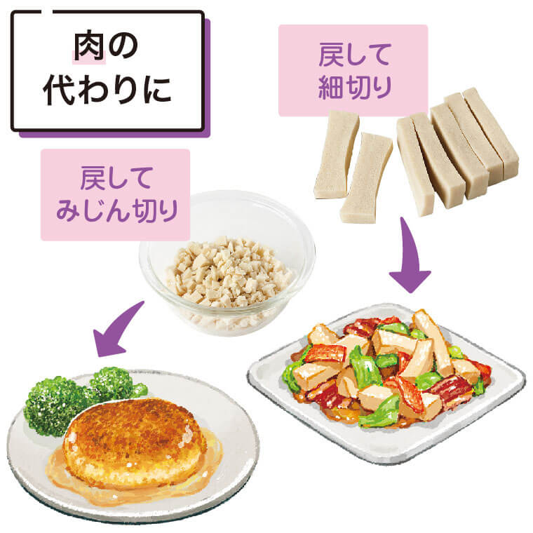 高野豆腐は1日じゅう、いつ食べても大丈夫。基本は戻して使いますが、乾燥のまま粉にして使うのも便利です。