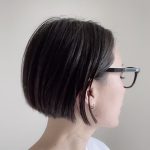 全身が白っぽいコーデのときに、黒縁めがねをかけるだけでコーデが引きしまる効果あり。