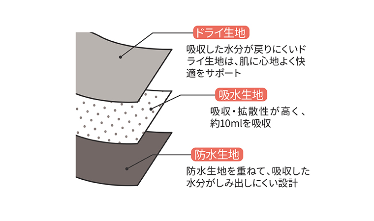【ポイント2 】不安な日も安心。3層構造で10ml吸水