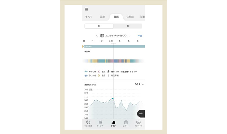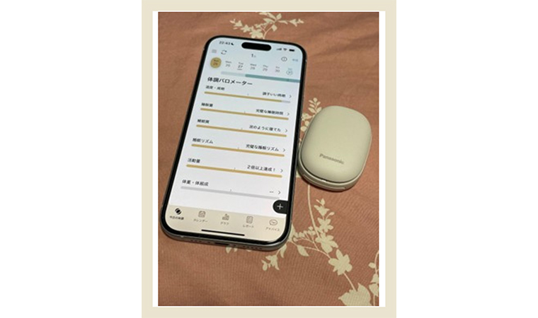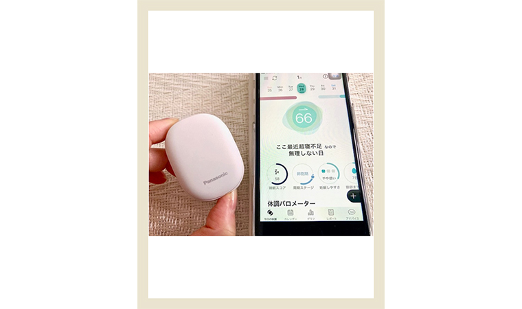 “忙しい時期でも、自分の体調の傾向がわかっていると安心。デバイスをつけて寝るだけなので、めんどくさがりな私でも無理なく続けやすい。アドバイスをもらって今日も元気って思えるだけでも気持ちがいいなぁ。”