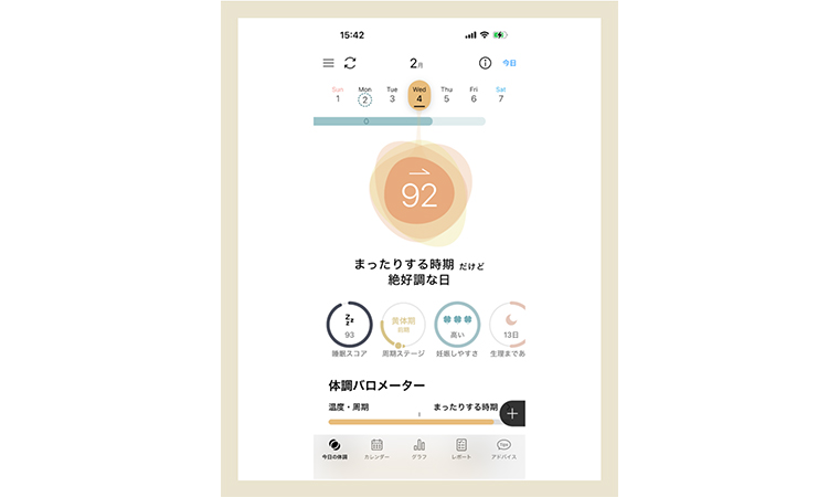 “月経周期と連動して、その日の体調の目安や、過ごし方を考えるヒントがアプリで確認できます。なんとなくスタートしていた朝が「今日はこうしよう」と考えられるようになりました。”
